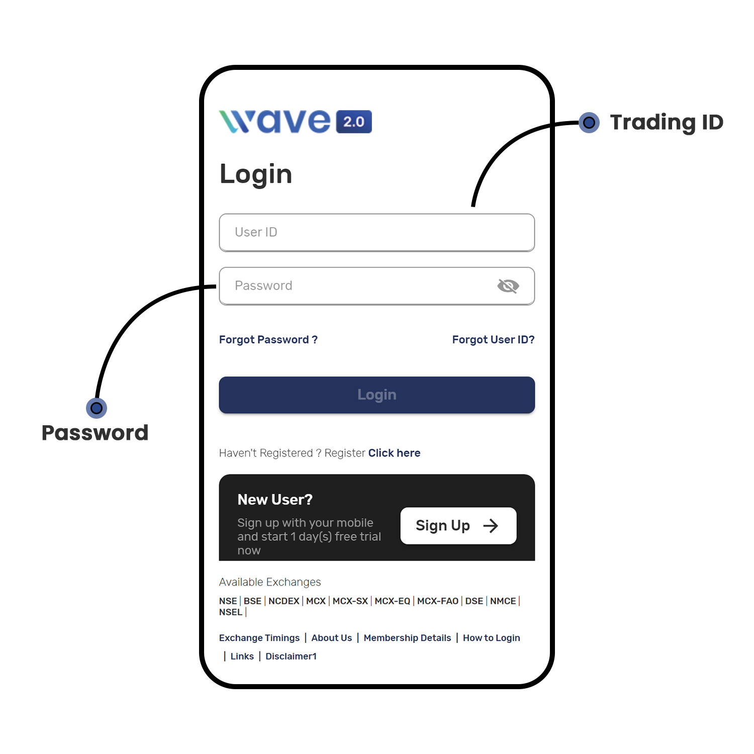 • Use your Trading ID, Password, and 2 Factor Authentication (OTP/TOTP).