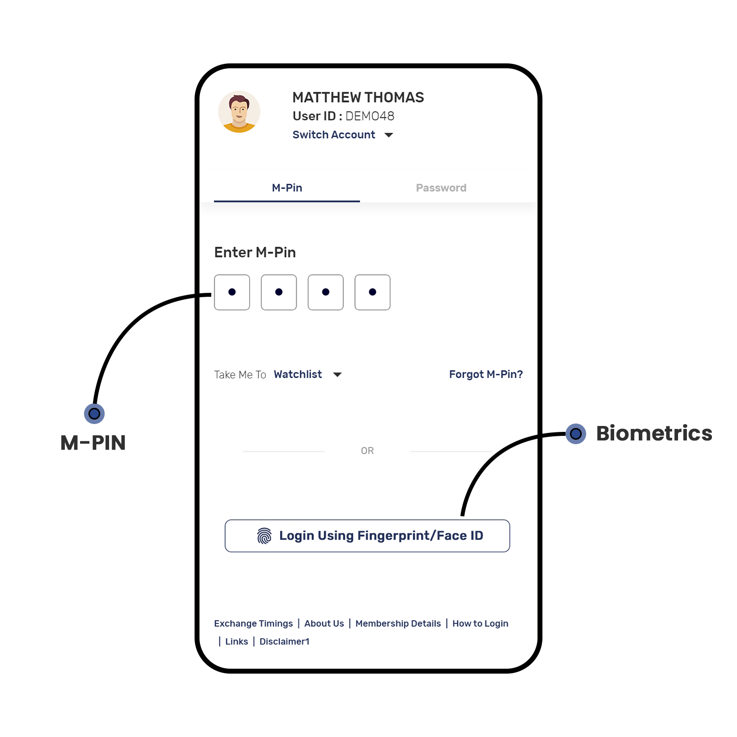 • You can use 4 digit MPIN setup in the app.